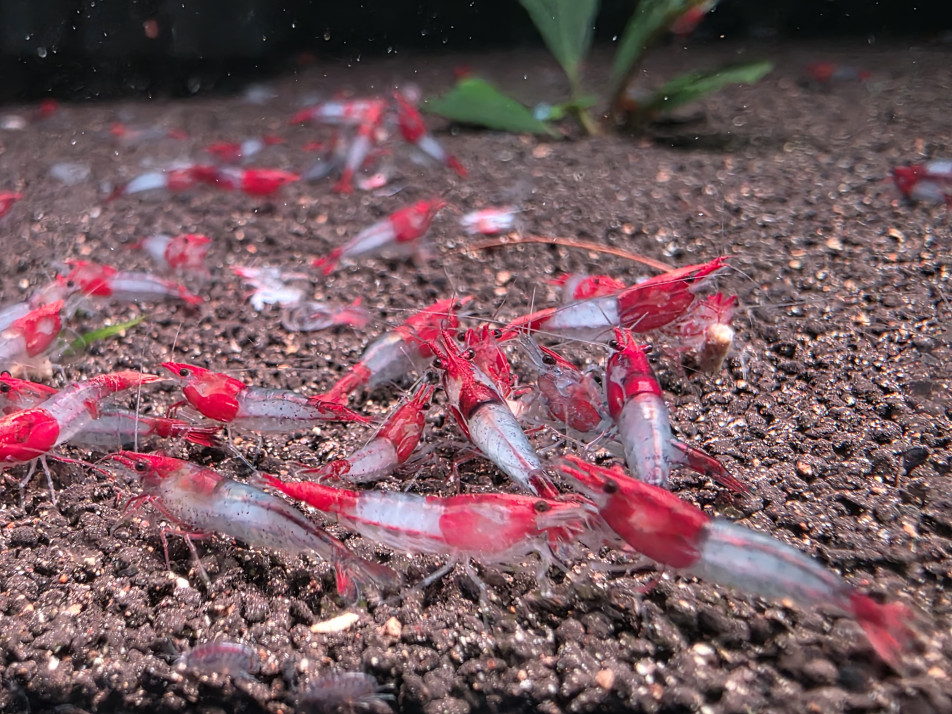 레드릴리 쉬림프는 안정된 수질과 환경만 갖춰지면 자연 번식이 매우 쉬운 편입니다.