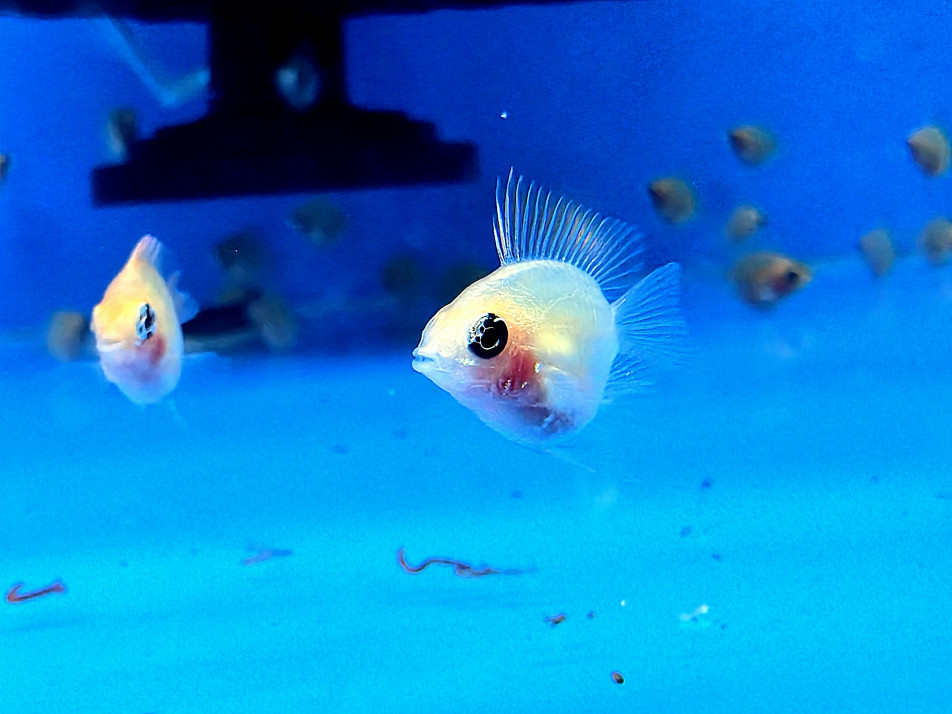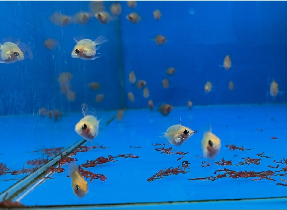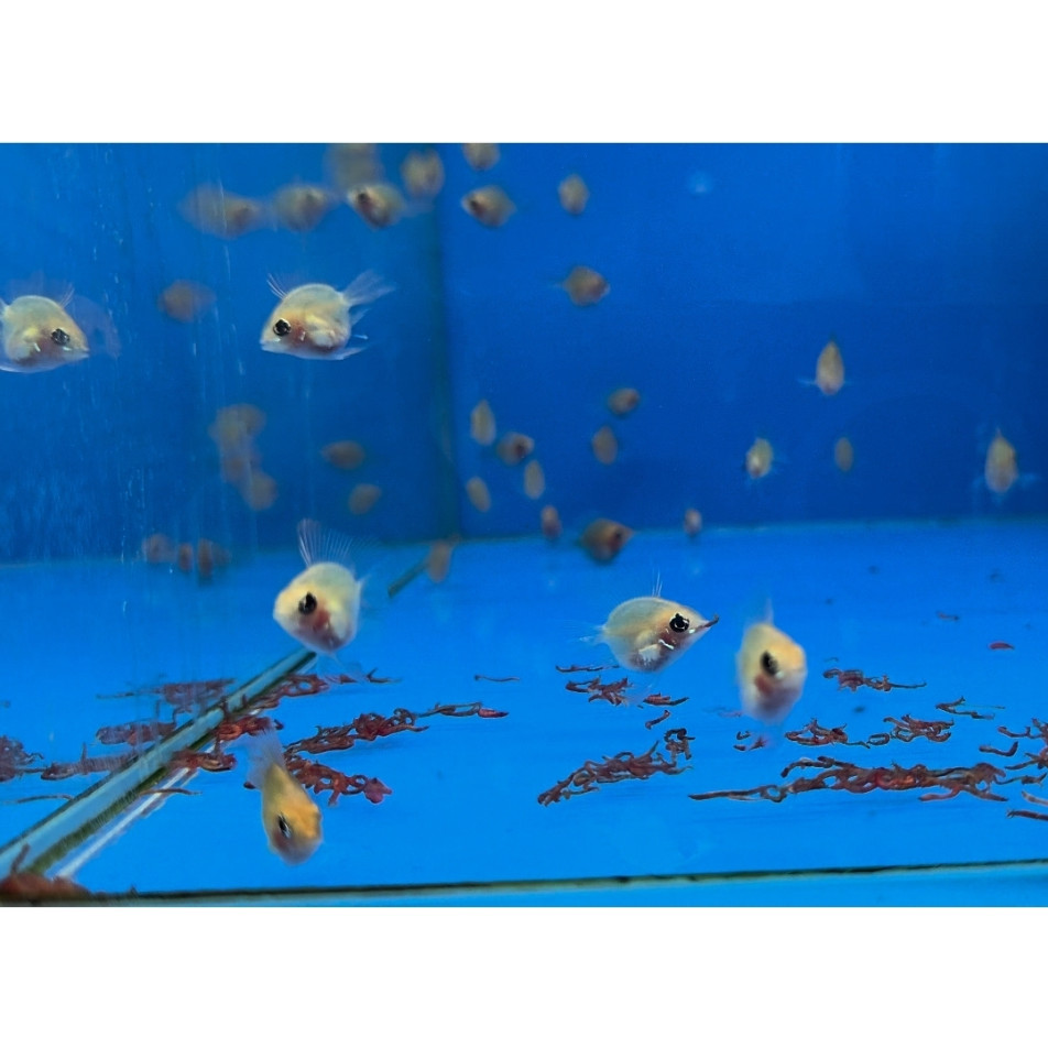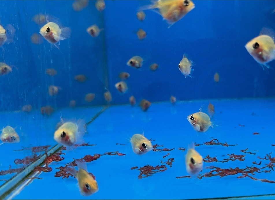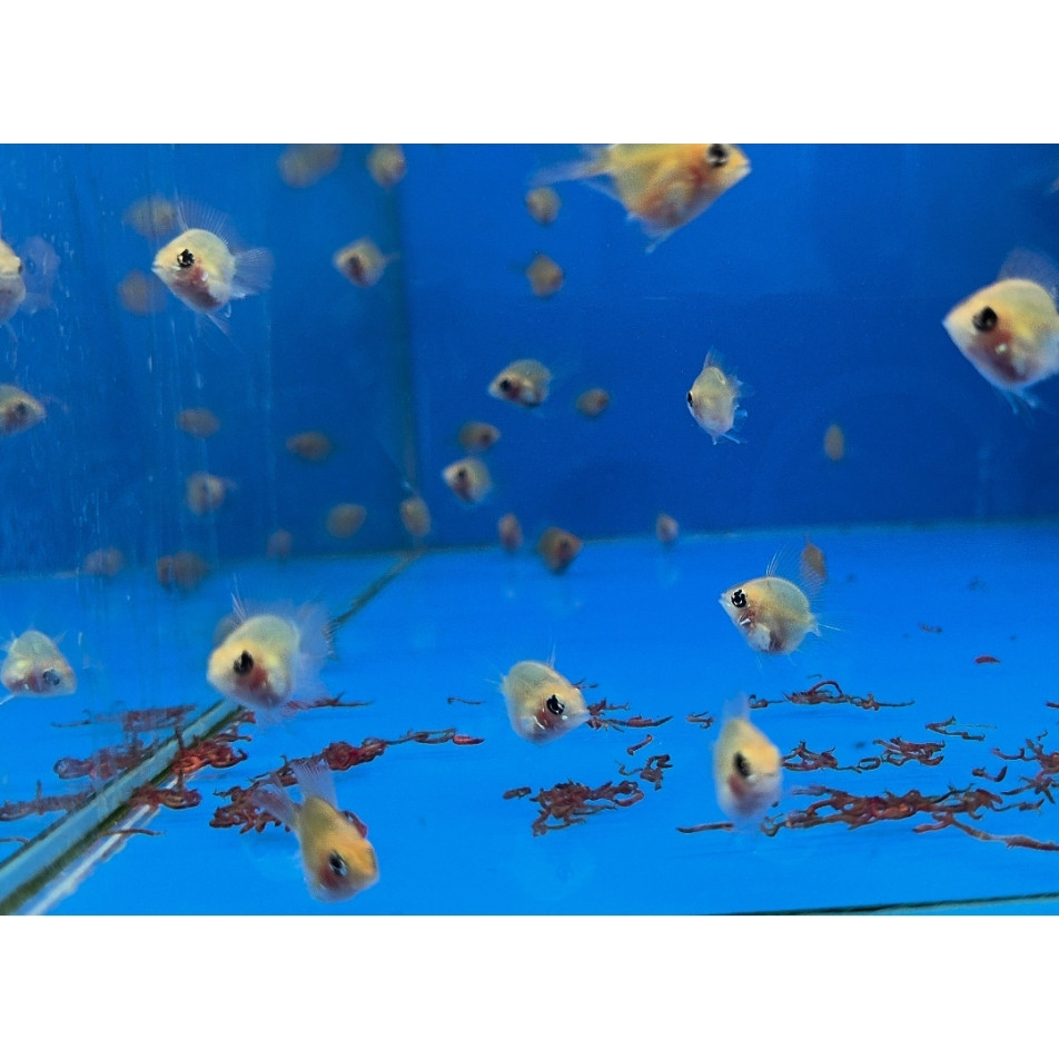 열대어 전용 플레이크, 미세 과립사료, 브라인쉬림프, 냉짱 등 단백질 먹이를 급여합니다.